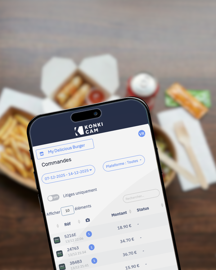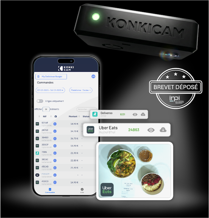 KonkiCam est une solution de capture photo sans contact de vos plats avant envoi, pour récupérer facilement l’argent des remboursements abusifs.