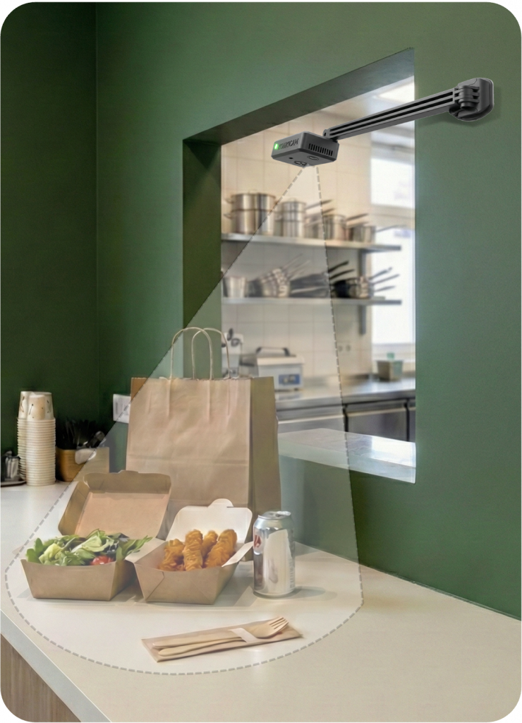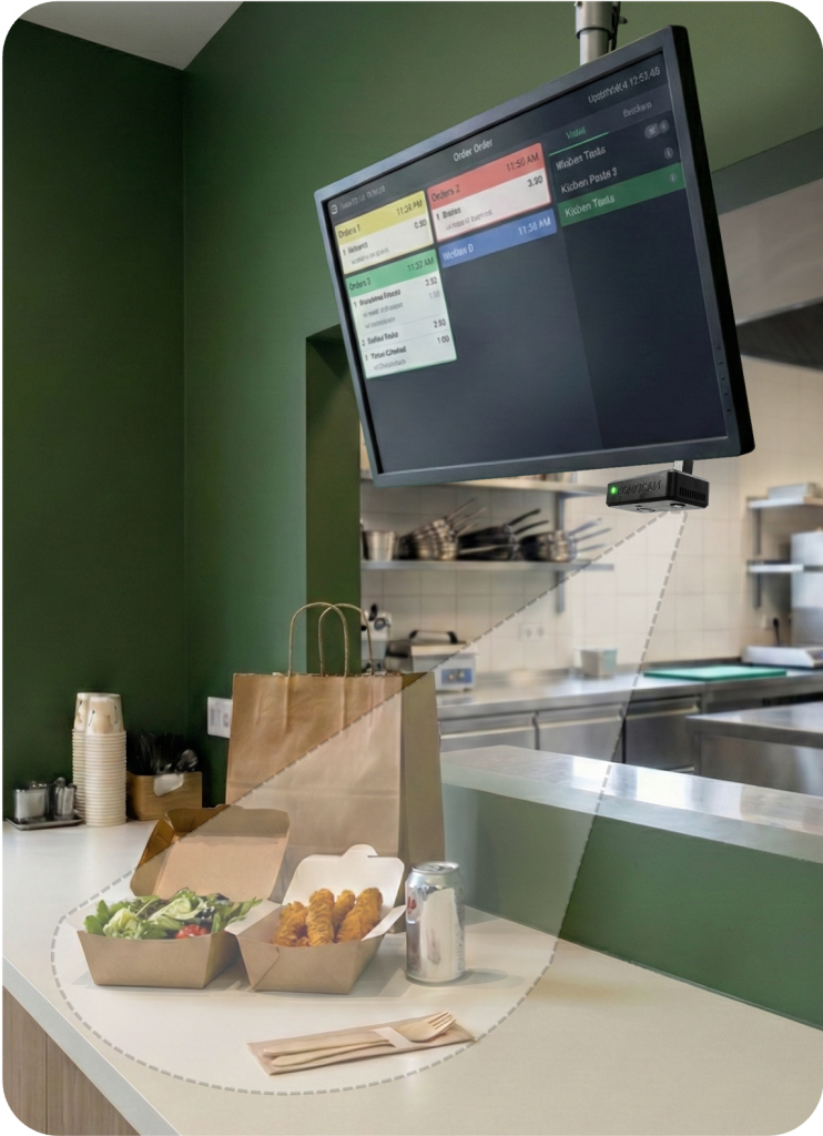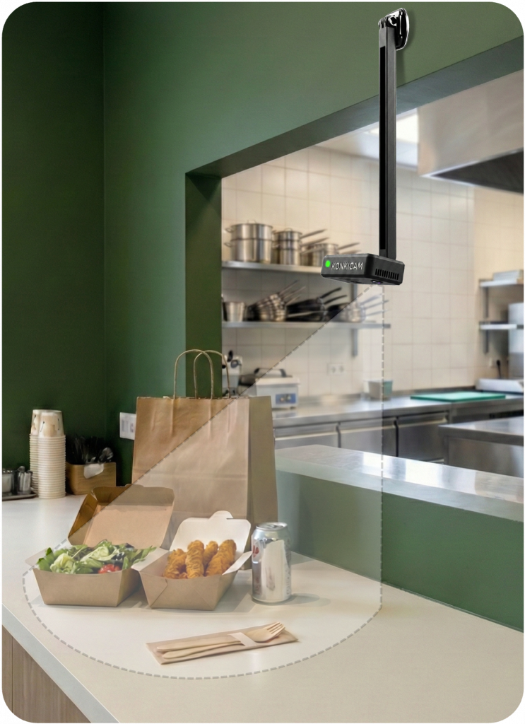 La KonkiCam est un boitier photo compact intelligent, qui prend des photos de vos plats avant envoi avec un déclenchement sans contact par détection de geste (dans le respect des normes d’hygiène en restauration).